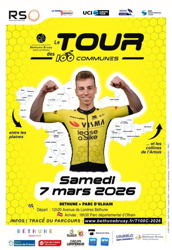 Événement désormais ancré dans le paysage sportif local, le Tour des 100 communes revient pour une nouvelle édition le samedi 7 mars 2026. Organisée conjointement par la Communauté d’agglomération de Béthune-Bruay, Artois Lys Romane et l’association Région Sport Organisation (RSO) cette épreuve cycliste internationale s’impose comme un rendez-vous populaire, fédérateur et structurant pour le territoire.