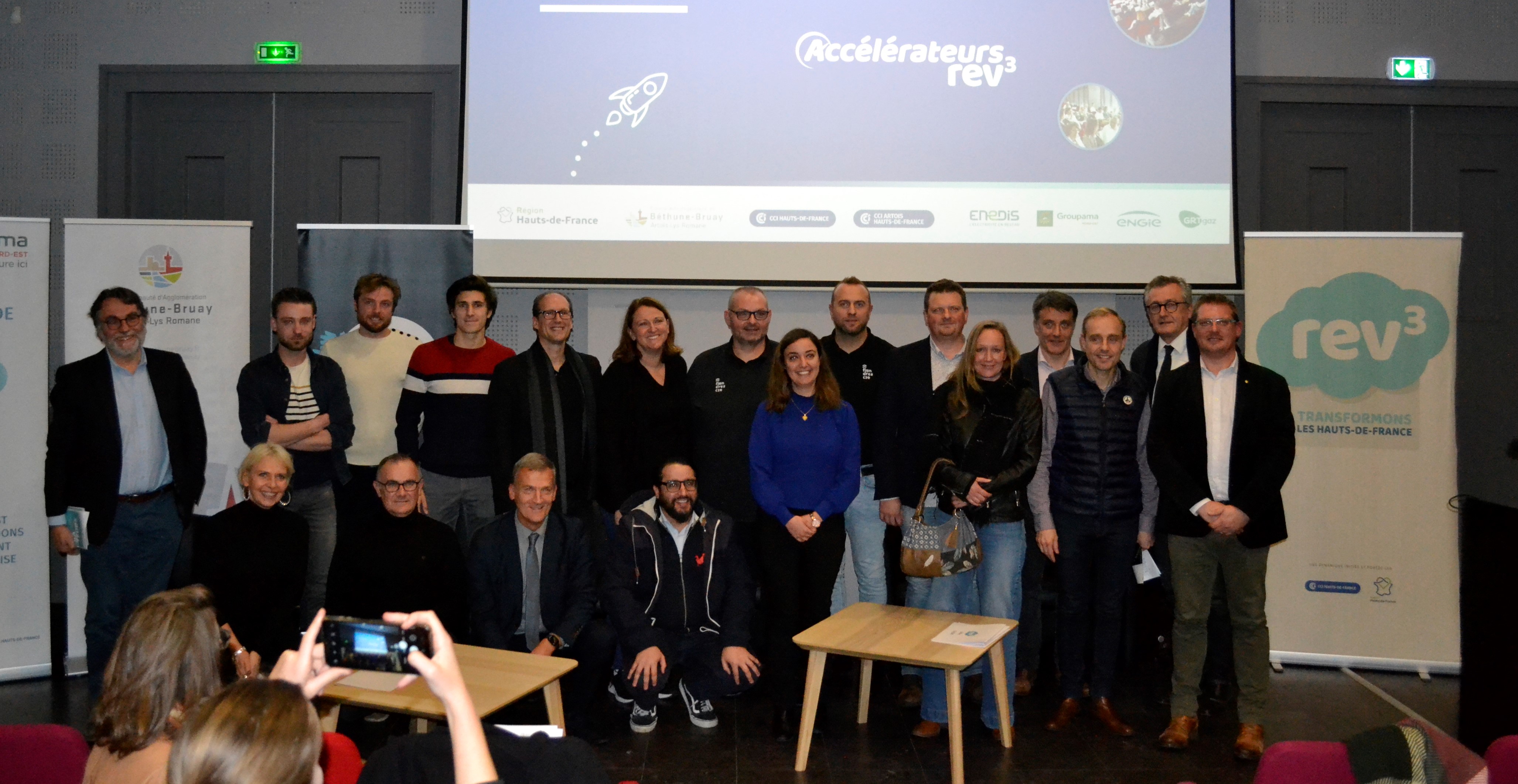 Une rencontre en présence de Olivier GACQUERRE, Président de l'Agglomération, Fabienne DERAIN, Vice-Présidente de la CCI Artois, du Vice-Président rev3 à la CCI Hauts-de-France, Didier COUSIN et des partenaires du réseau Accélérateurs Rev3 🤝