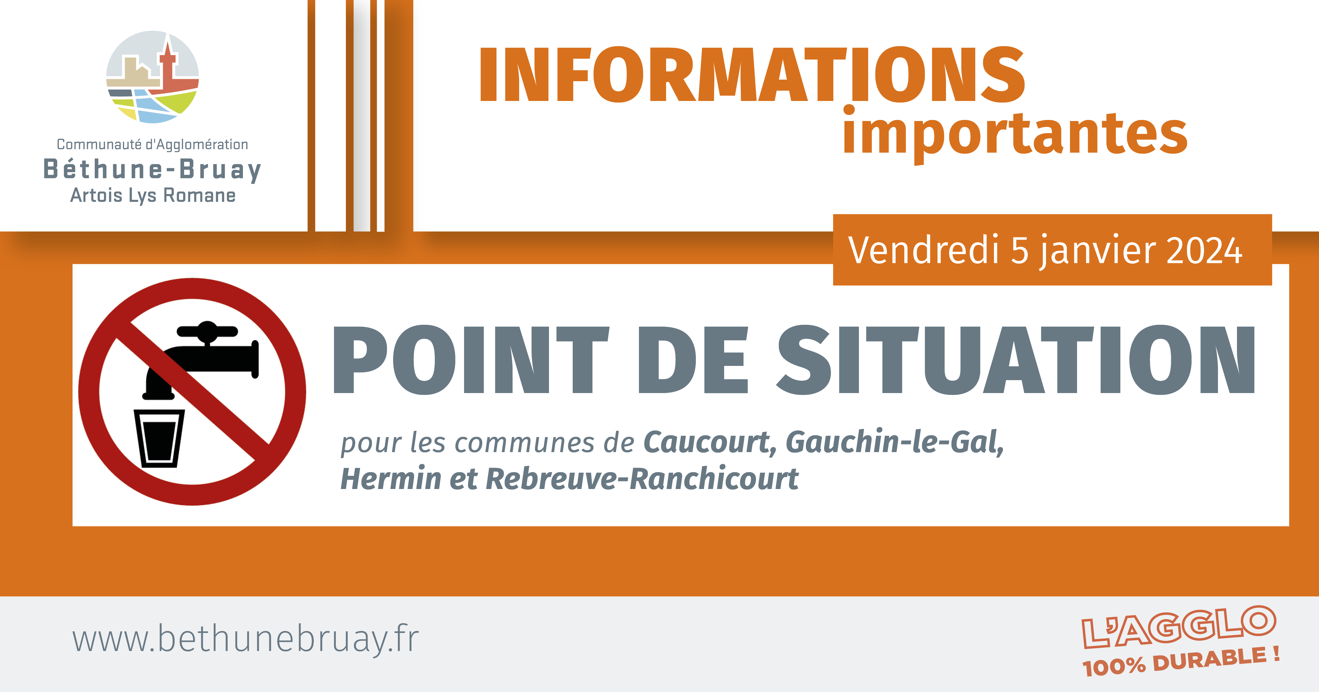 Par conséquent, les habitants des 4 communes de CAUCHOURT, HERMIN, GAUCHIN-LE-GAL et REBREUVE RANCHICOURT peuvent à nouveau consommer l’eau du robinet à des fins alimentaires dès à présent.