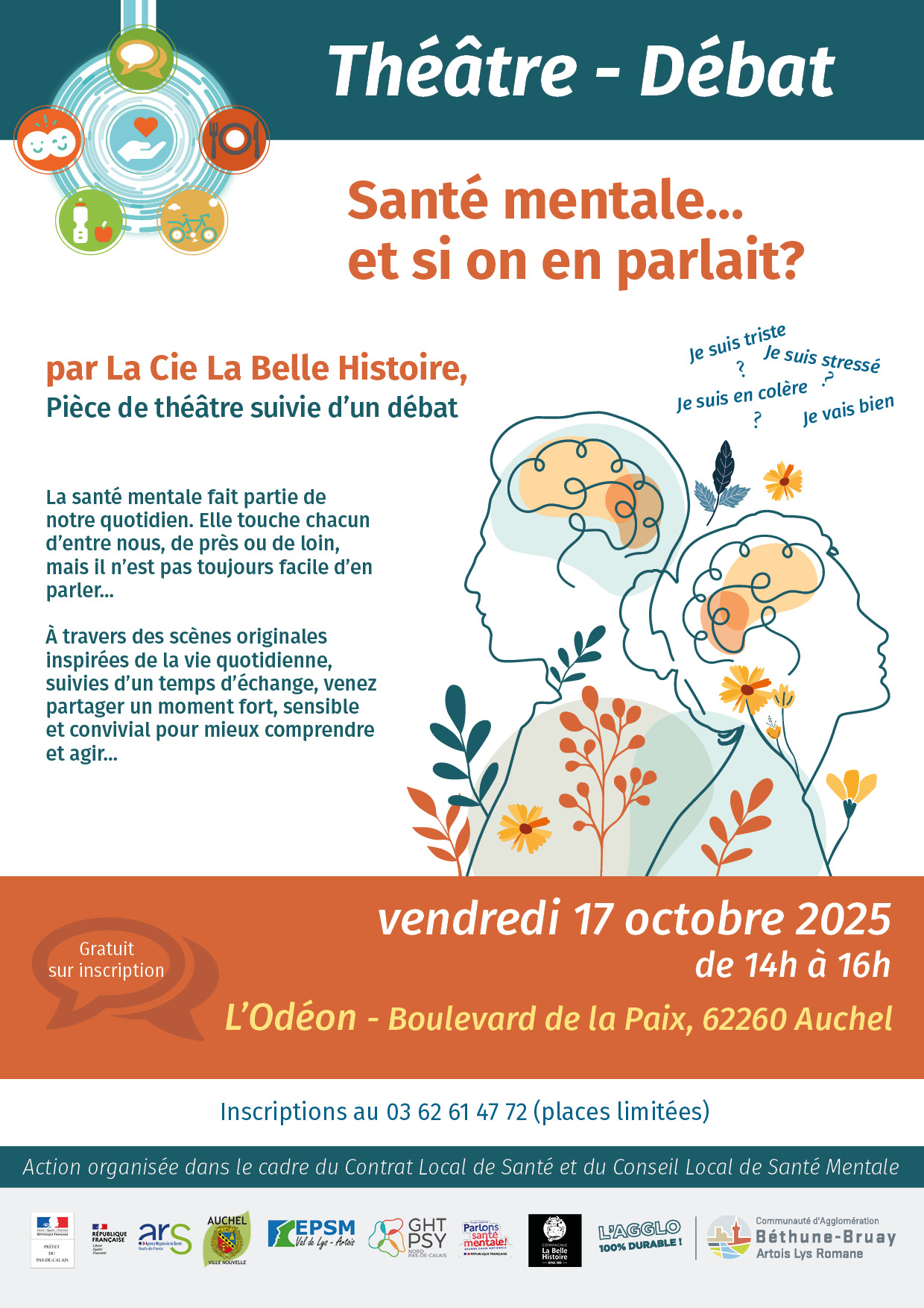 Dans le cadre des Semaines d’information sur la santé mentale 2025, le Conseil Local de Santé Mentale d'Agglo vous invite à un théâtre-débat ouvert à tous