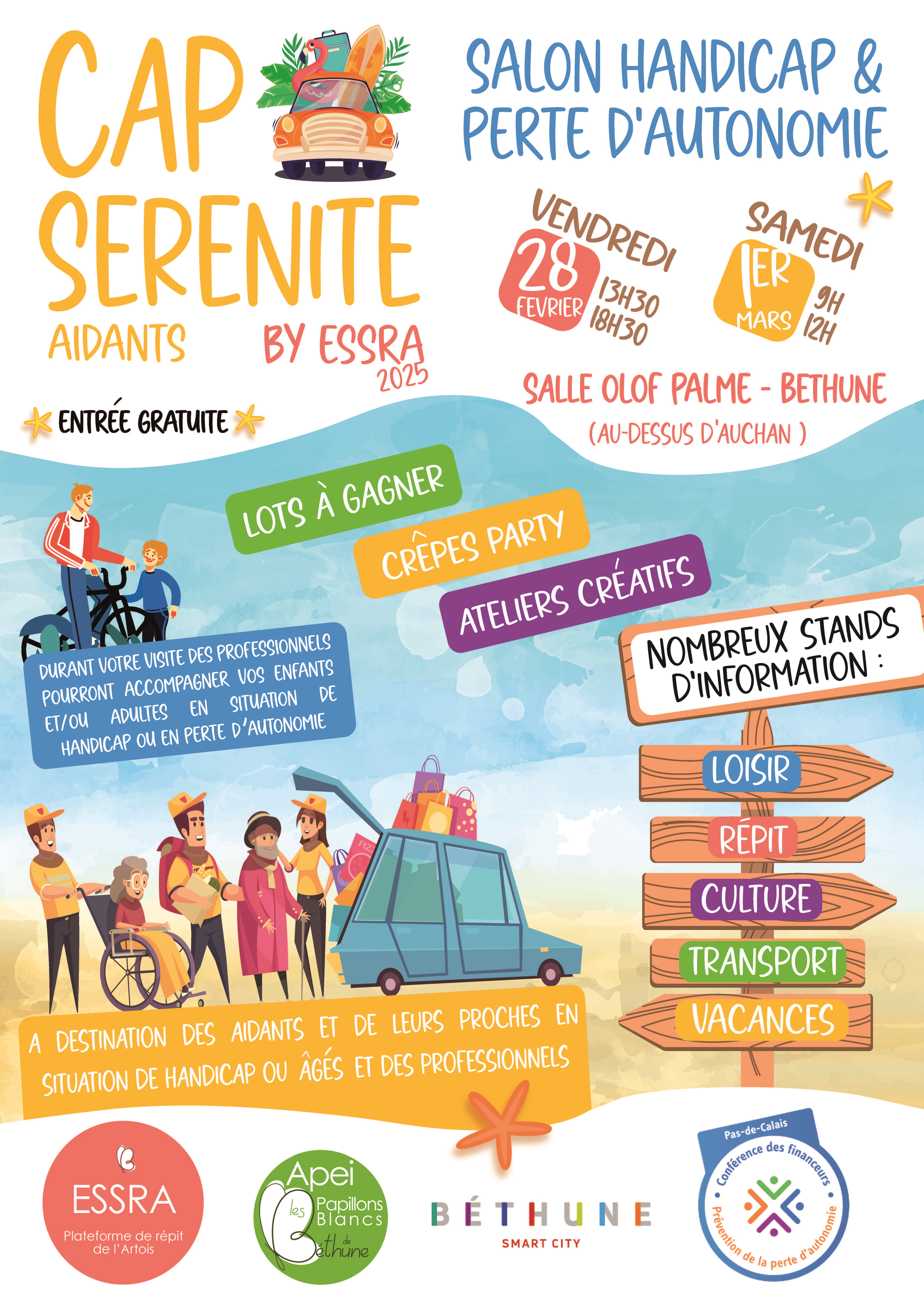 Avec plus de 60 stands, ce salon, gratuit, a pour objectif de vous informer sur les dispositifs existants en termes de loisirs, vacances, culture, répit et transport pour les personnes en situation de handicap et les personnes âgées, en perte d’autonomie. Lors de ce salon, des lots seront à gagner (par exemple, une séance de réflexologie plantaire, un repas, une nuitée en hôtel…). Vous pourrez participer gratuitement à des ateliers tel qu'un atelier culinaire, un atelier création de cartes postales, un atelier de relaxation par luminothérapie. Si besoin, accueil du proche aidé, par 2 professionnelles, pendant le temps où vous effectuez la visite des stands.