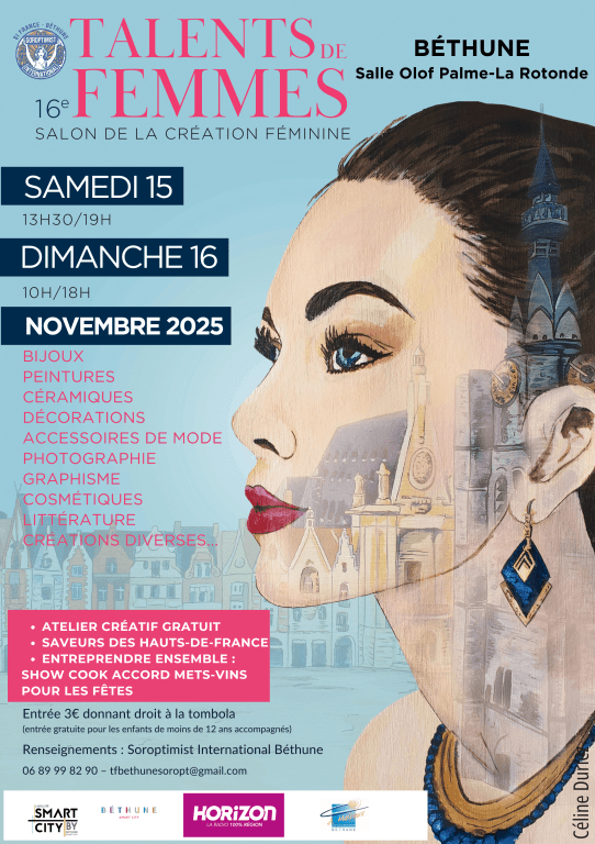 De nombreuses femmes, artistes, artisanes, créatrices, autrices et entrepreneures vous donnent rendez-vous pour deux journées de découverte de leurs créations, à la salle Olof Palme de Béthune du samedi 15 novembre de 13 h 30 à 19 h au dimanche 16 novembre 2025 de 10 h à 18 h.