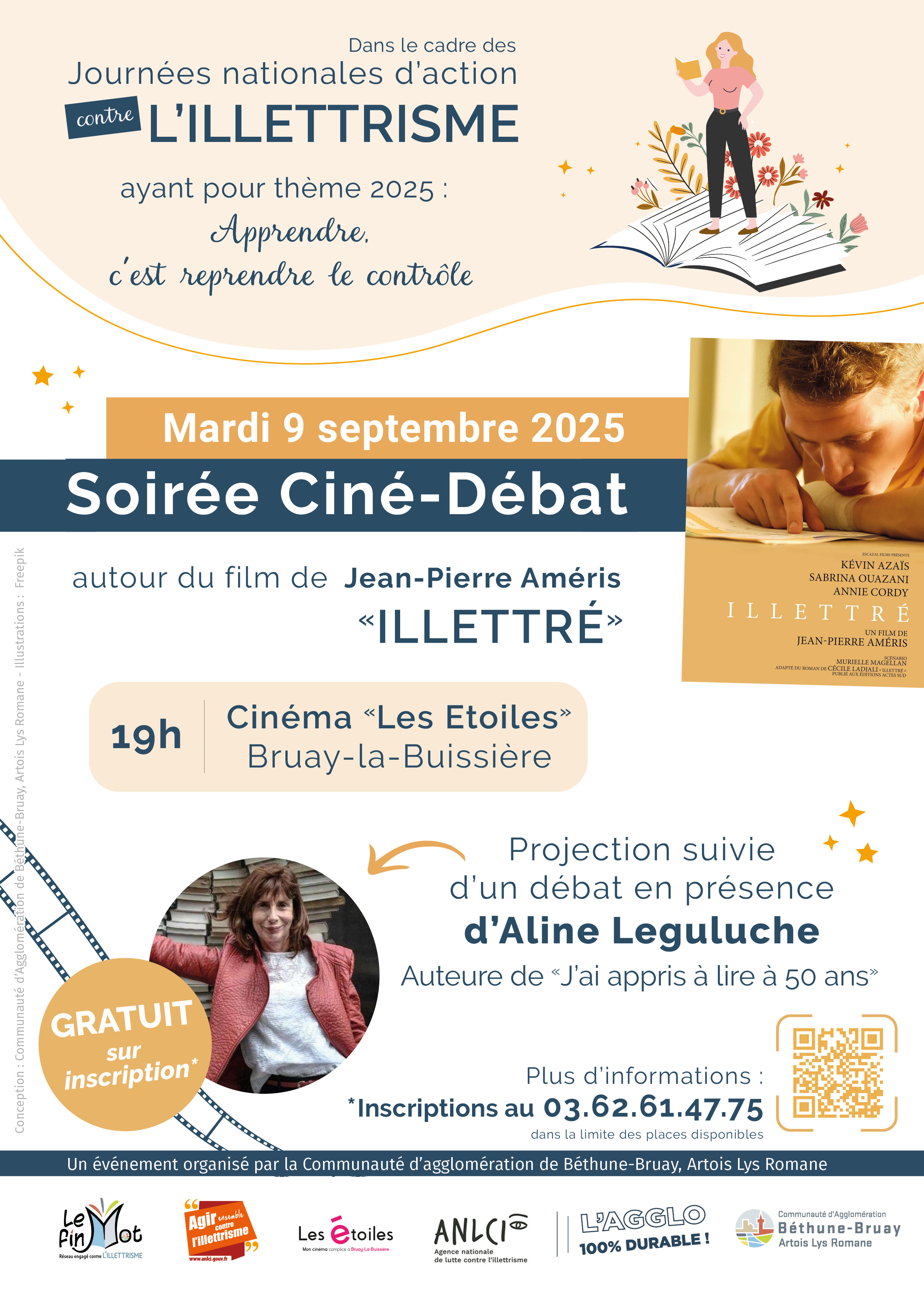 La projection sera suivie d’un débat en présence d’Aline Leguluche, autrice de « J’ai appris à lire à 50 ans » et « Mon combat contre l’illettrisme ».