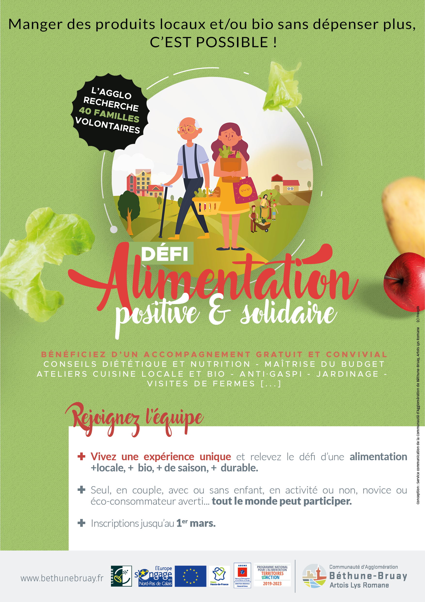 Le défi s’adresse à toutes les personnes intéressées : seule, en couple, avec ou sans enfants, actif ou non, novice ou éco-consommateur averti, résidant sur le territoire de la Communauté d’Agglomération de Béthune-Bruay. 40 familles seront sélectionnées, pour ce défi, qui est totalement gratuit.