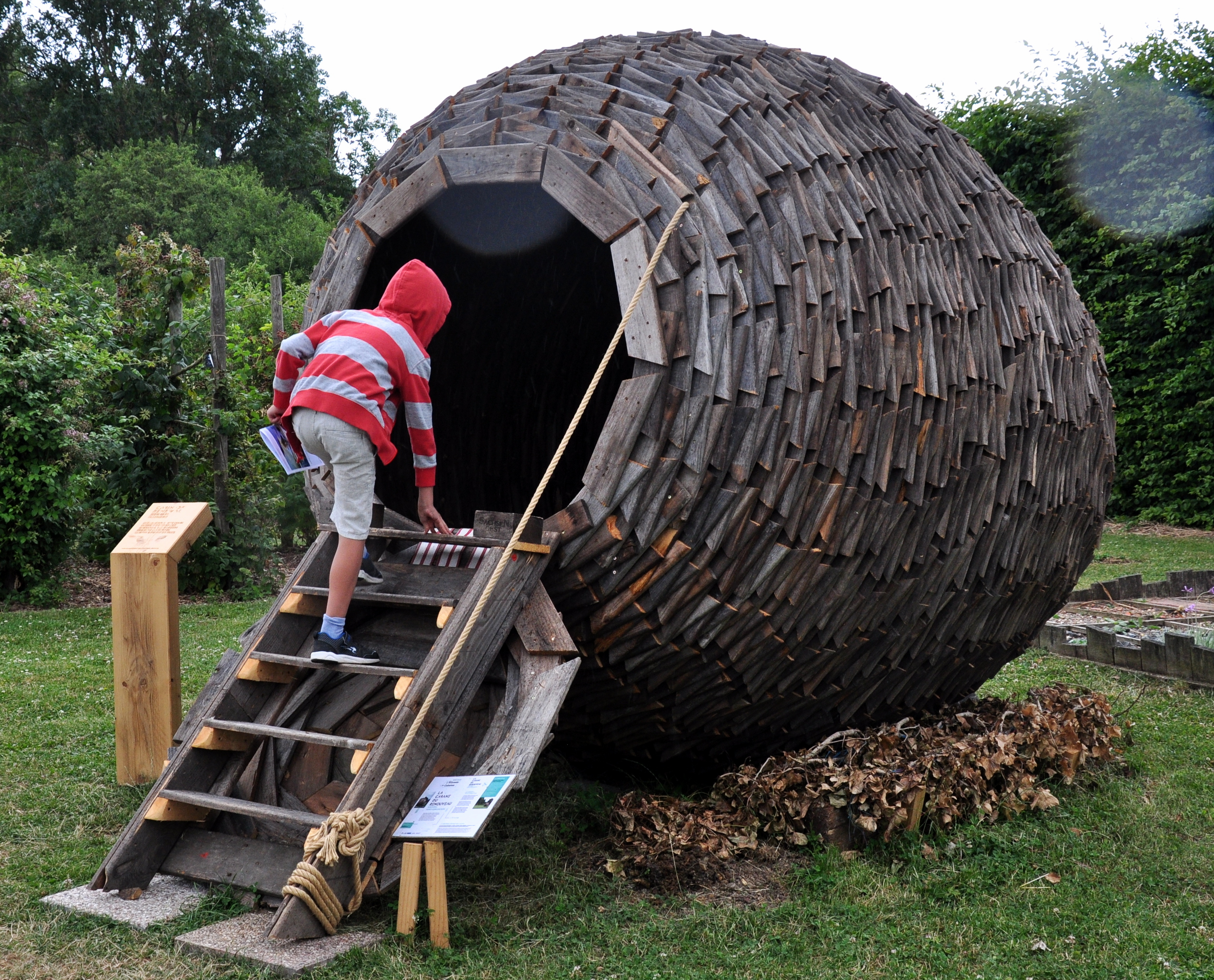 Dans le cadre du festival Odysée, une curieuse amphore tout en bois a fait son apparition au début de l'été à la Maison de la nature de Mont-Bernanchon. Il s'agit en fait de l'œuvre d'un artiste allemand qui nous explique que« créée en réemploi, cette cabane en forme d'œuf évoque l'idée de renouveau». Et qu'« elle se laissera envahir par la végétation, la nature reprenant ses droits. » Il suffisait d'y penser! Si vos pas vous mènent par là ...