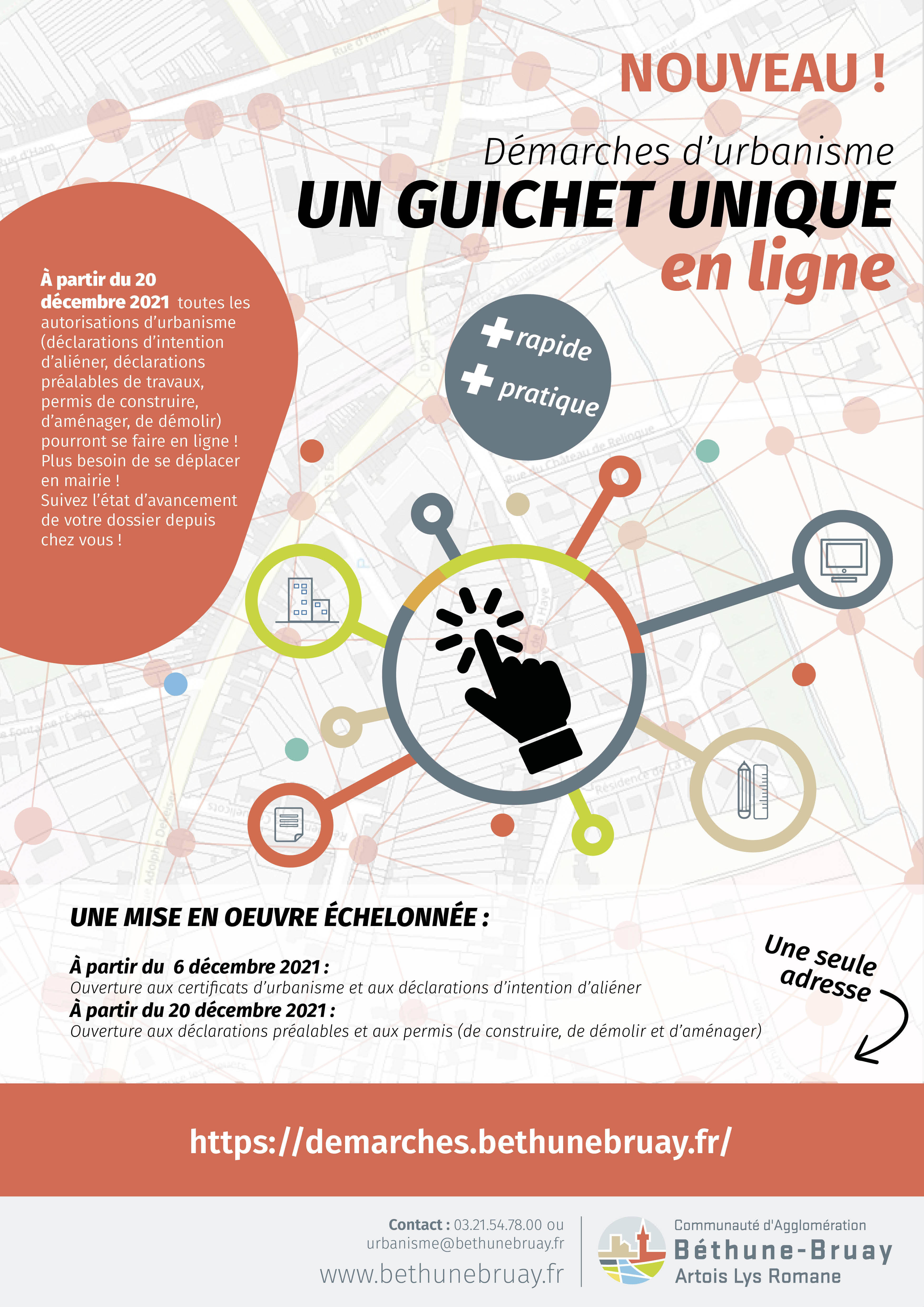Le guichet unique est accessible via cette page : Démarches communauté d'agglomération de Béthune-Bruay - Accueil (bethunebruay.fr)