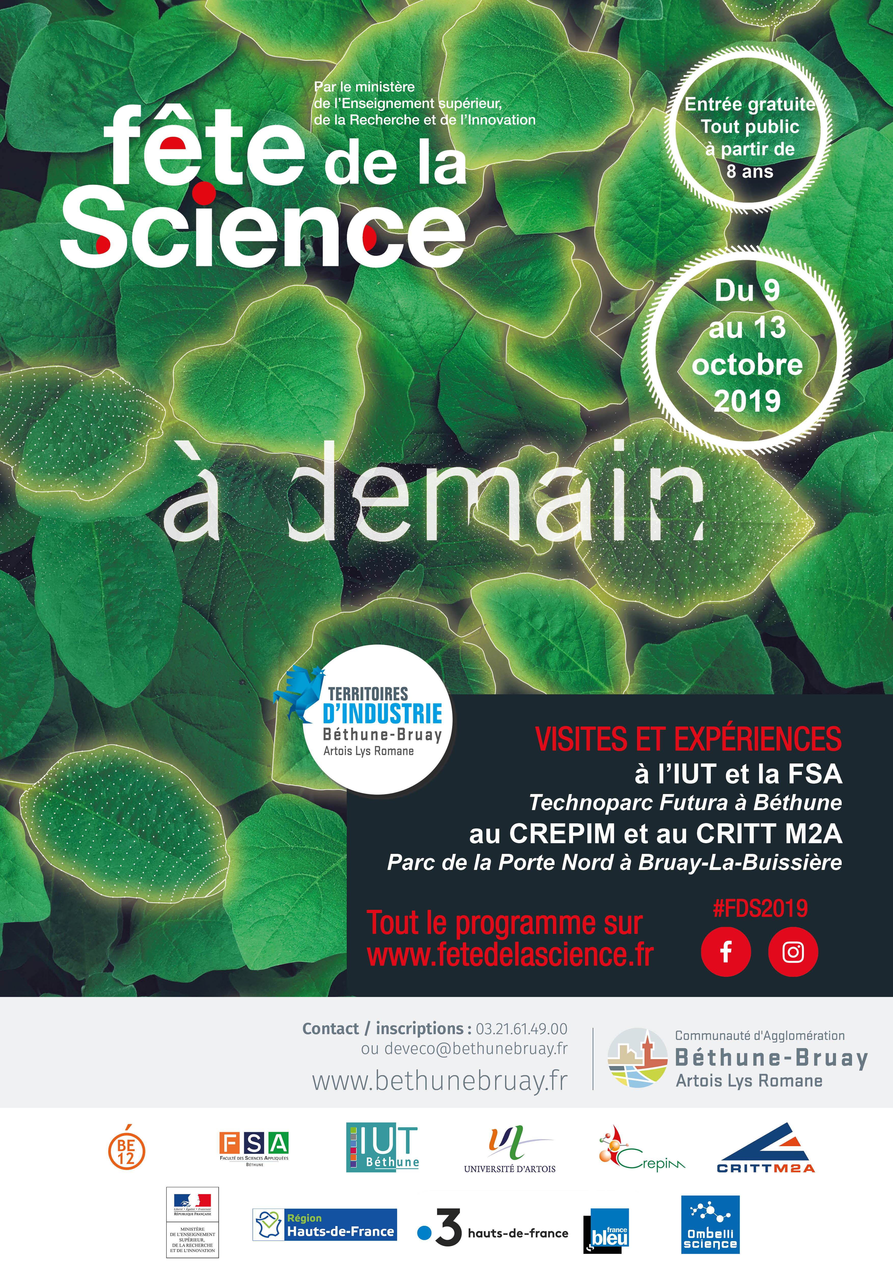 Le mercredi 9 de 14 h à 17 h, visites (expériences en direct) de la FSA et de l'IUT, au Technoparc Futura de Béthune. Le samedi 12 de 10 h à 16 h 30, visite du Crepim (ignifugation des matériaux).