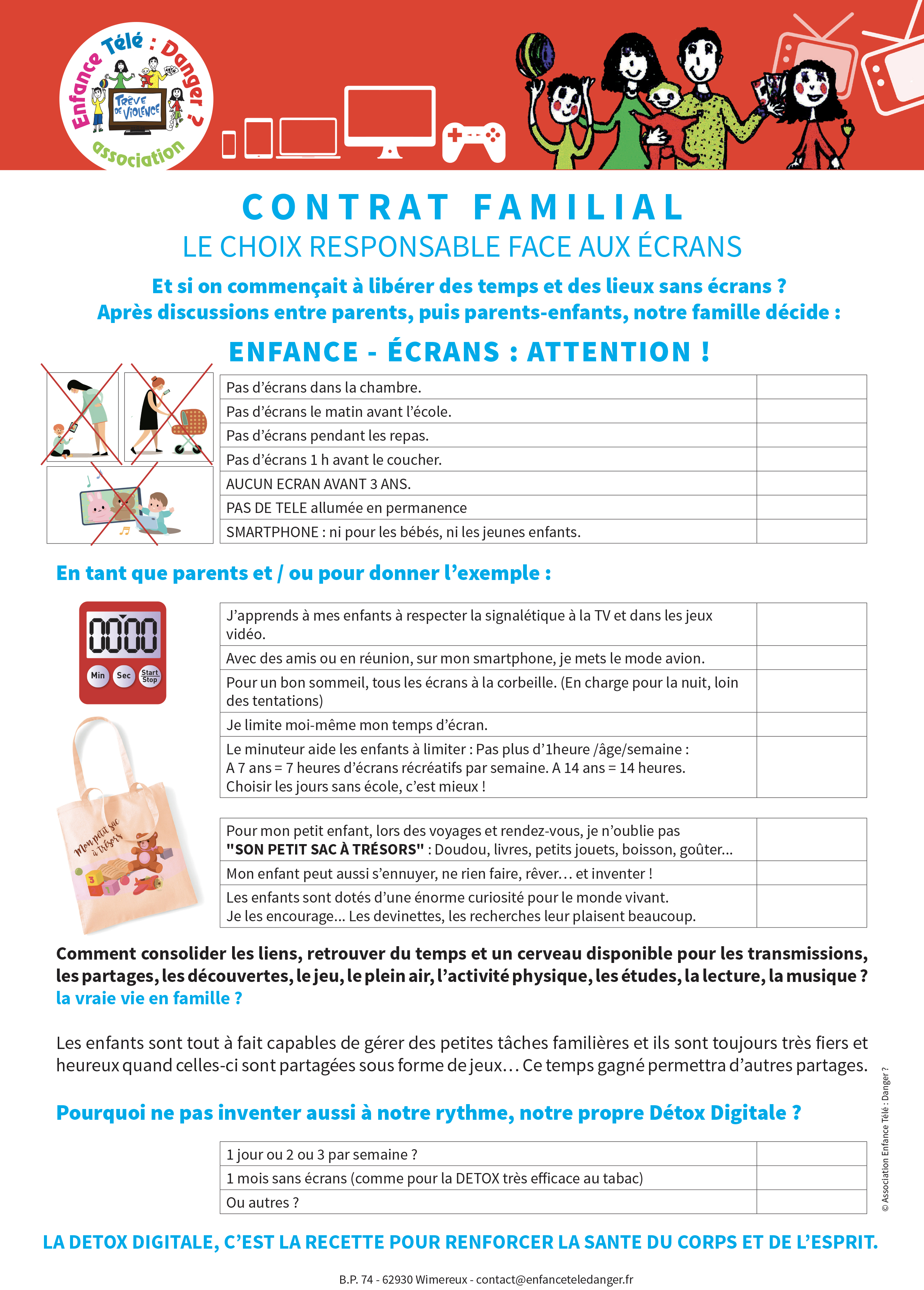 Grâce au Contrat familial, chaque foyer peut fixer ses propres règles et retrouver progressivement pus de temps partagé loin des écrans (à télécharger dans l'encart à droite)