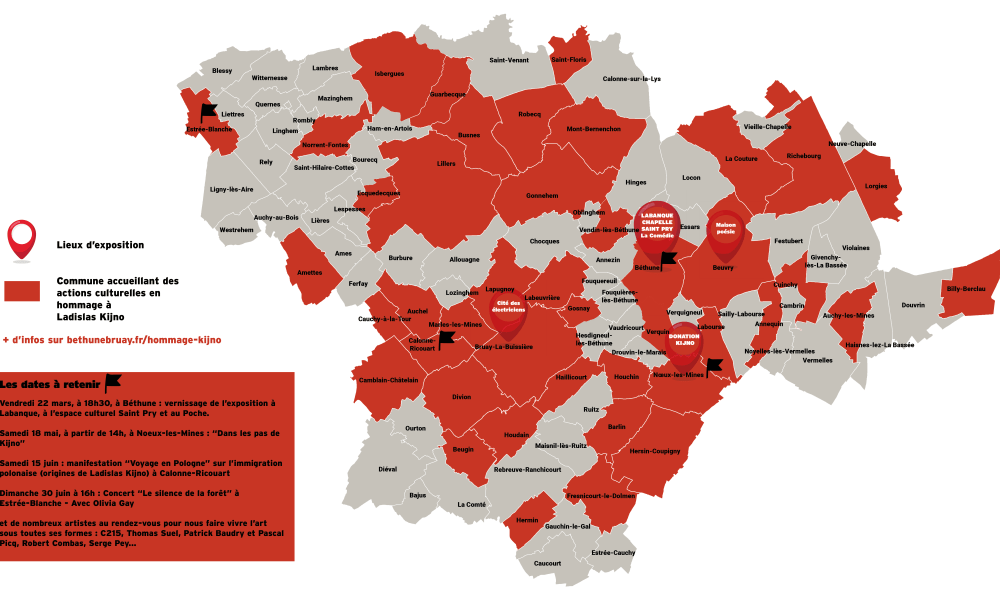 La Communauté d’agglomération organise un hommage au peintre de renommée internationale, Ladislas Kijno, du 23 mars au 4 août 2024. Vous êtes invités à suivre les traces de cet artiste, enfant de Noeux-les-Mines, à travers plusieurs expositions et de nombreuses actions culturelles sur l’ensemble du territoire. “Du galet aux étoiles”, titre de cette rétrospective, suit le fameux aphorisme de l’artiste : «Le peintre doit se faire scaphandrier pour descendre aux assises du monde et cosmonaute pour remonter jusque dans les étoiles.” Tour d’horizon de ce qu’il y aura à voir et à faire.